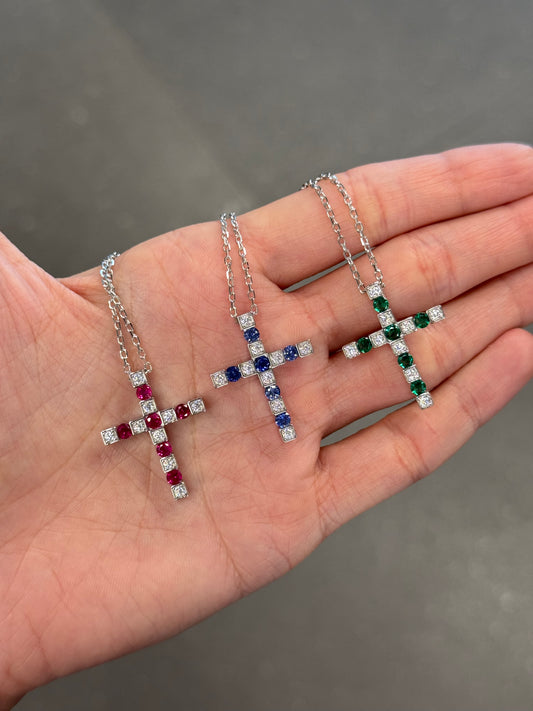 Emerald/ Ruby/ Sapphire Cross Necklace