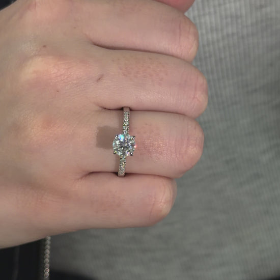 This round cut stone is exceptionally clean and bright, with a crisp white color and outstanding clarity. The round brilliant cut offers unmatched fire and brilliance, making it a timeless choice for an engagement or statement ring.