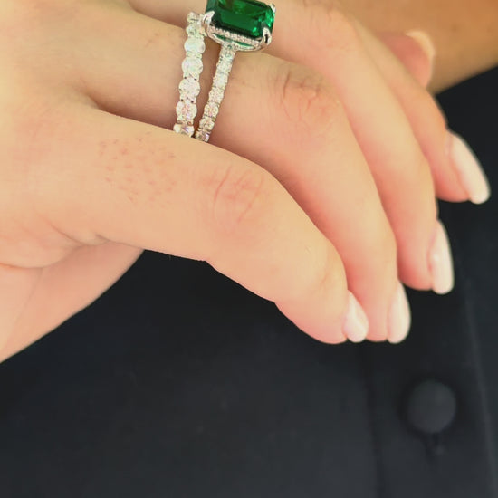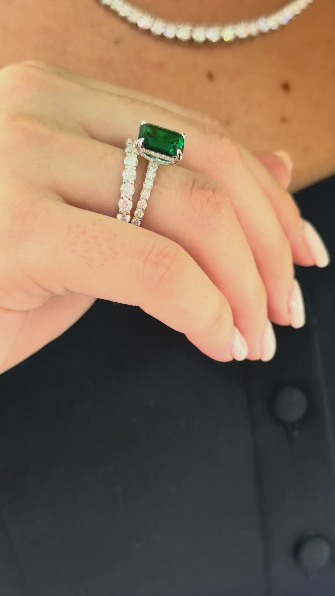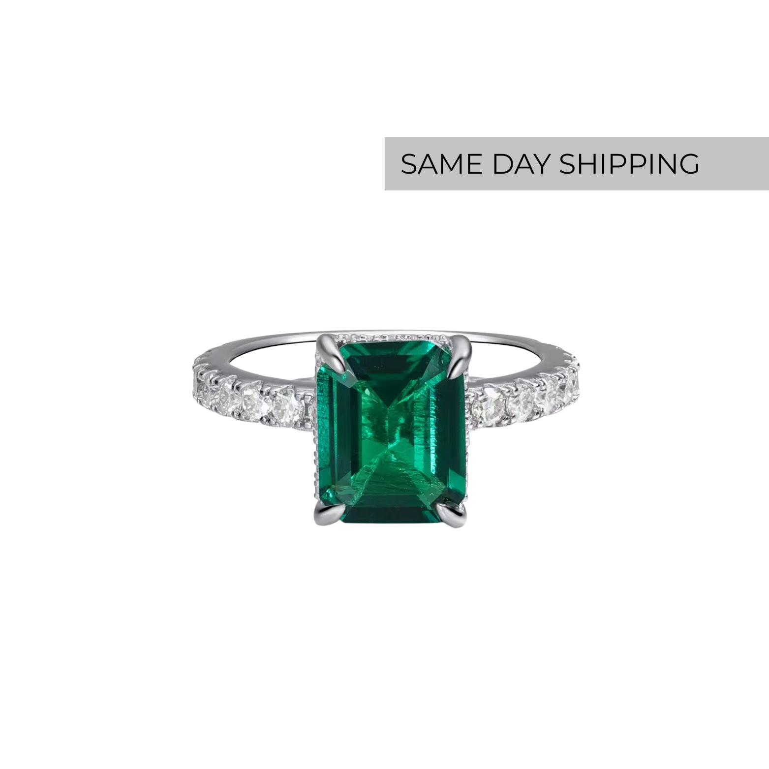 Gemstone (Center): Lab-Grown Emerald (8x10mm, ~4ct, Dark Green)