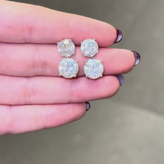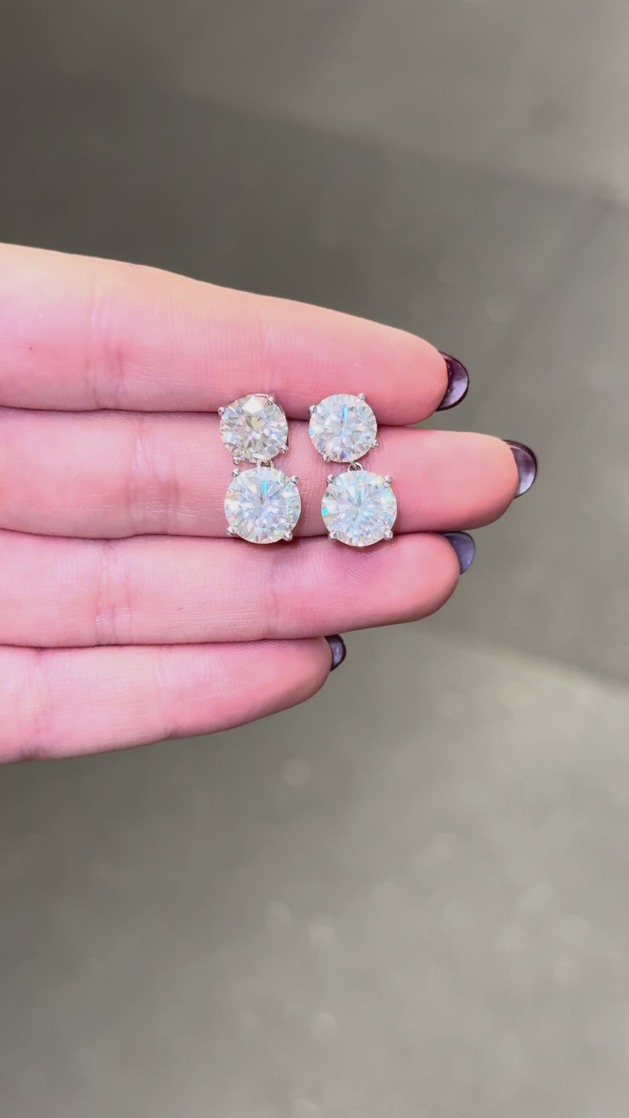 These double drop moissanite studs feature a 2ct stone on top and a 3ct stone on the bottom for a total of approximately 5cttw. Lightweight but bold, these earrings give the look of stacked diamond studs without the price tag. Perfect for date nights, events, or anyone who loves everyday glam.