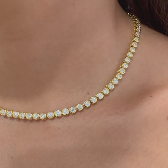 This necklace has the perfect mix of sparkle and style with shining Moissanite stones. Choose your preferred style with the various chain lengths and two stone carat options. Outshining diamonds, this necklace passes diamond tests, mimicking real diamonds so flawlessly that you won't spot the difference without a microscope!