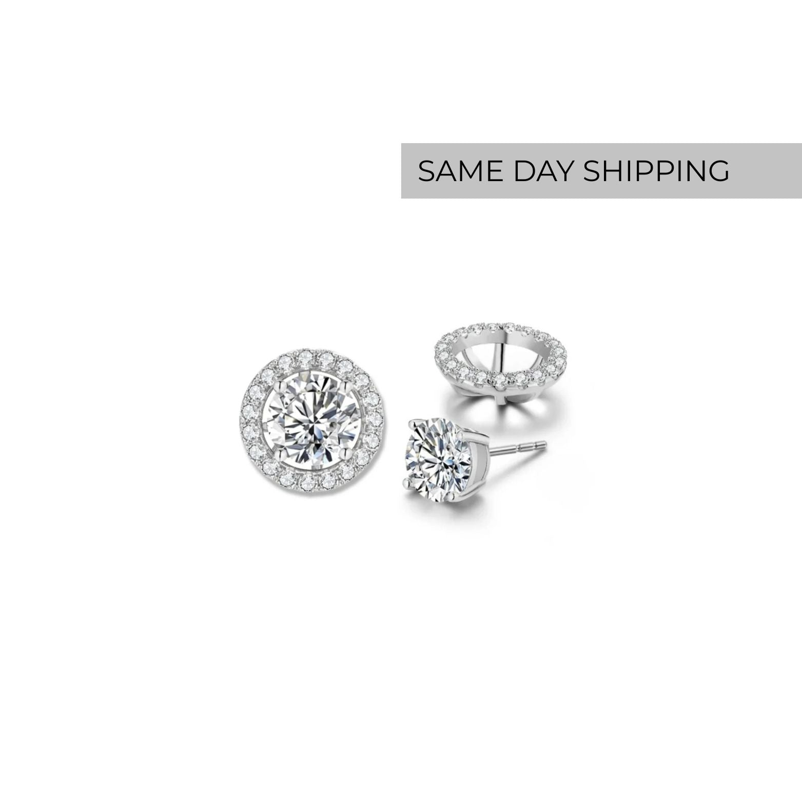 Wear them solo as timeless studs, or add the detachable halo jackets for a more elevated, statement look. The halo design enhances the brilliance and perceived size of the center stones — all the glow, your way.
