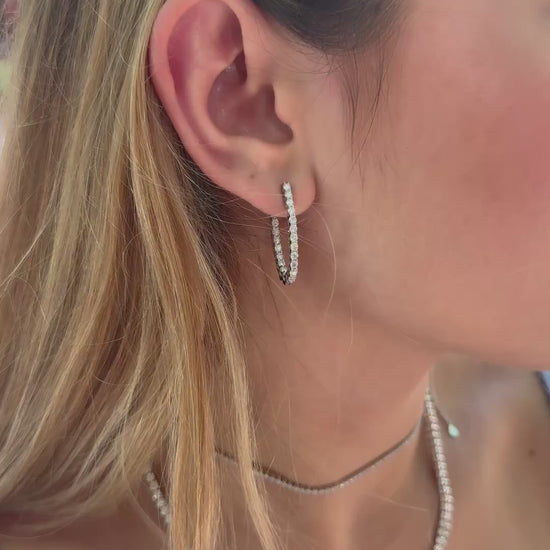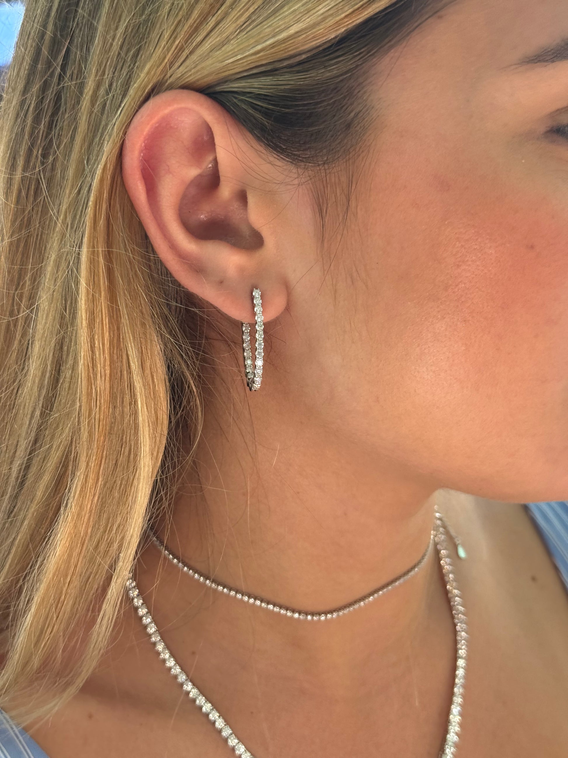 Designed to shimmer from every angle, these elegant inside-out hoops are lined with round brilliant moissanite stones—both inside and out—for a radiant, diamond-like sparkle. Lightweight yet luxurious, they elevate any look with timeless sophistication.