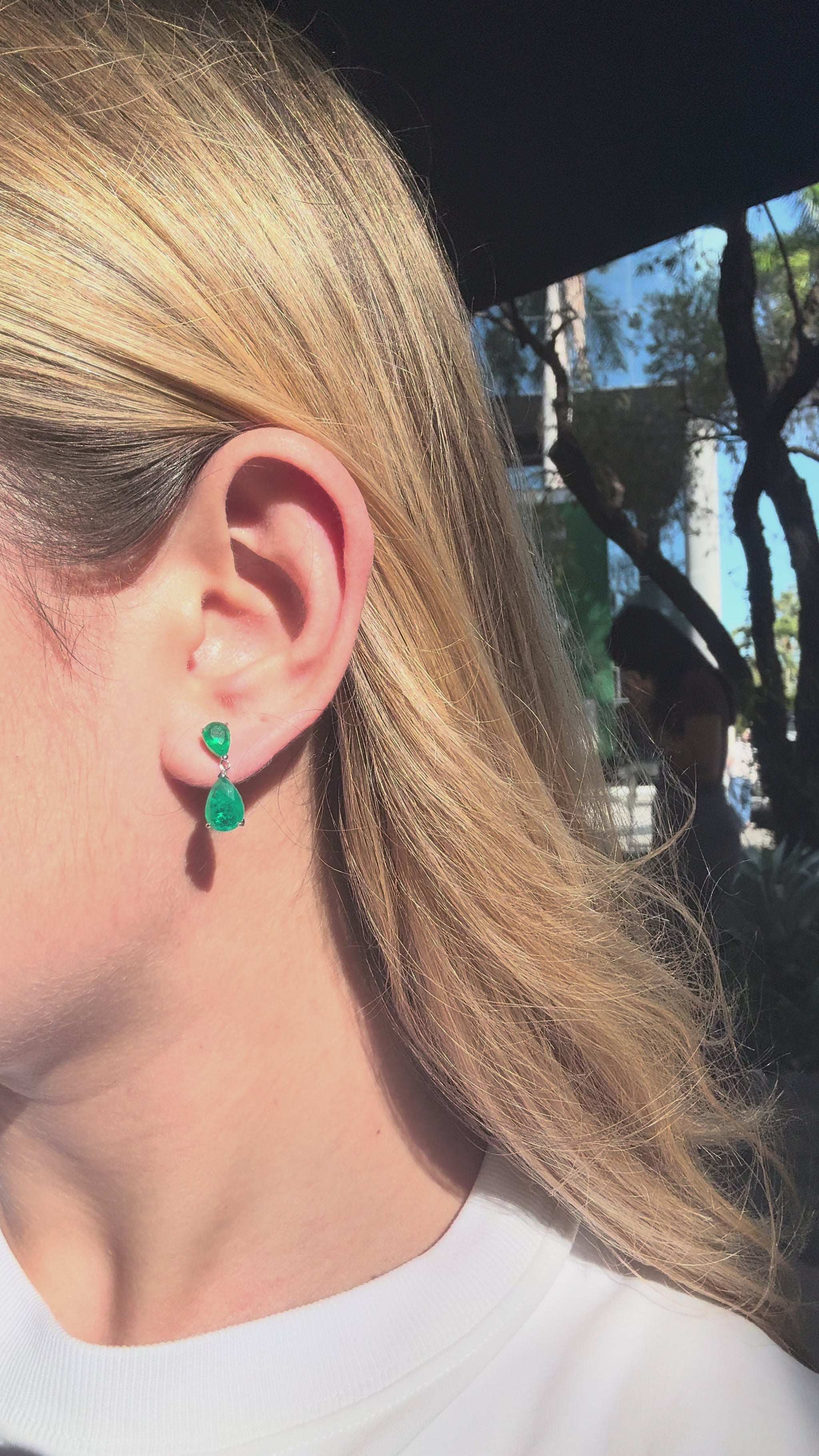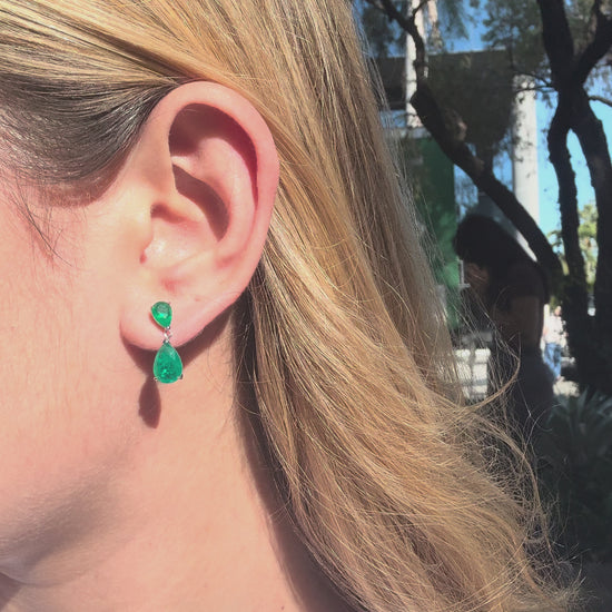 Bold, vibrant, and effortlessly elegant — these lab-created emerald drop earrings bring a rich, captivating pop of green to any look. With their double pear–cut design and graceful movement, they stand out beautifully while maintaining a polished, refined feel.