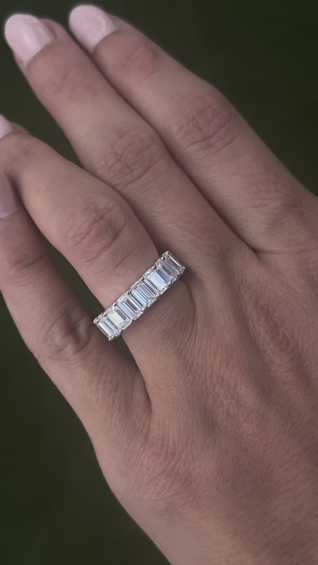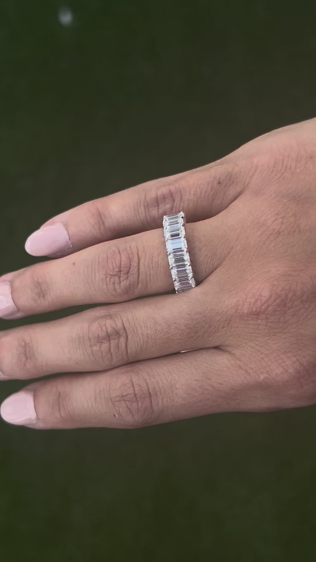 Our Emerald Moissanite Eternity Half Ring features a row of radiant emerald-cut stones set in a sleek band that delivers brilliance from every angle. The half-eternity style offers the perfect balance of sparkle and comfort, ideal for stacking or wearing solo. Crafted with precision and made to last, it’s a modern classic designed to elevate any look.