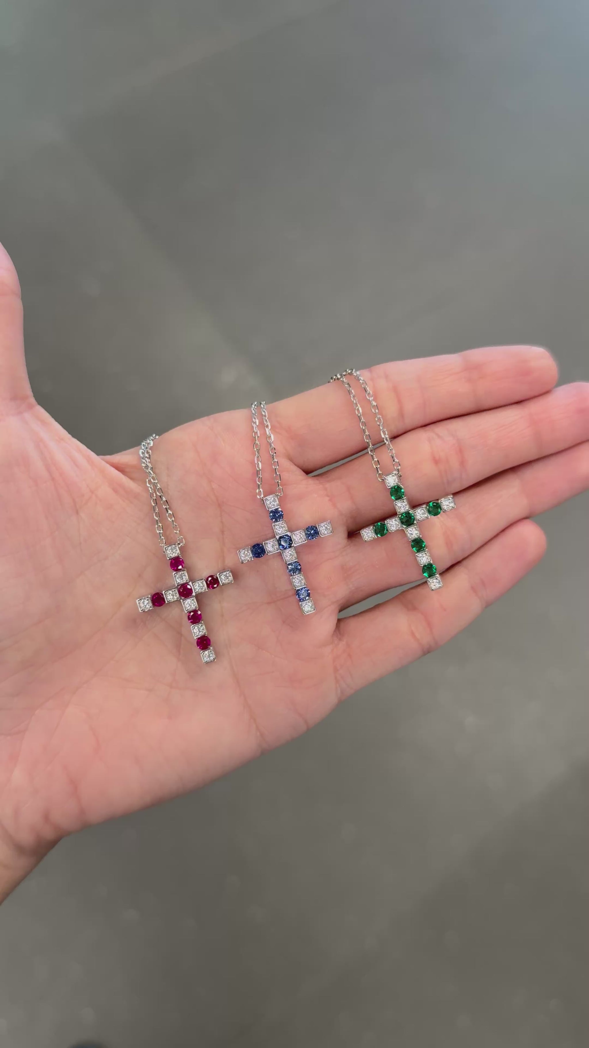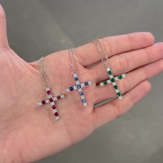 Emerald/ Ruby/ Sapphire Cross Necklace