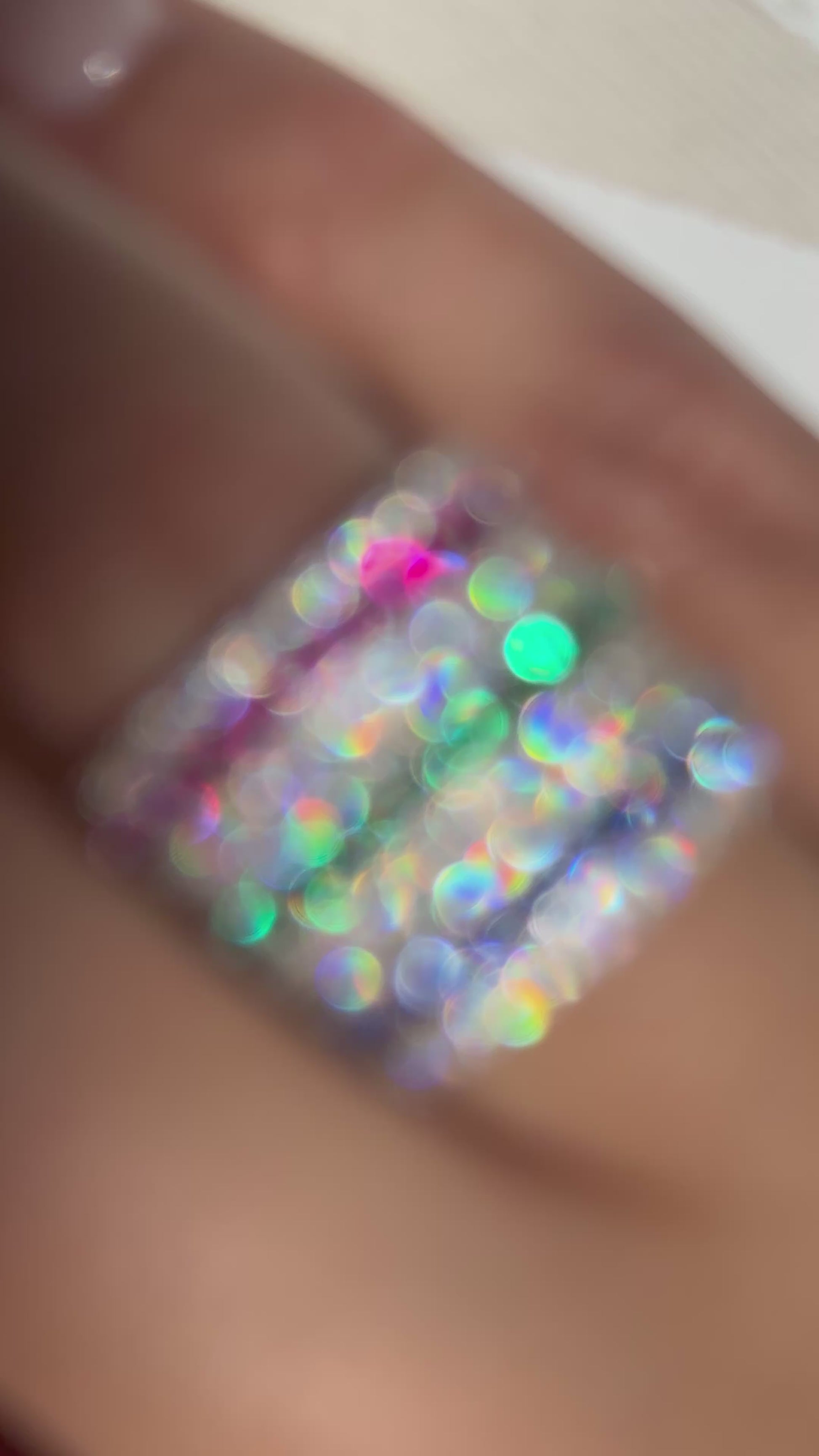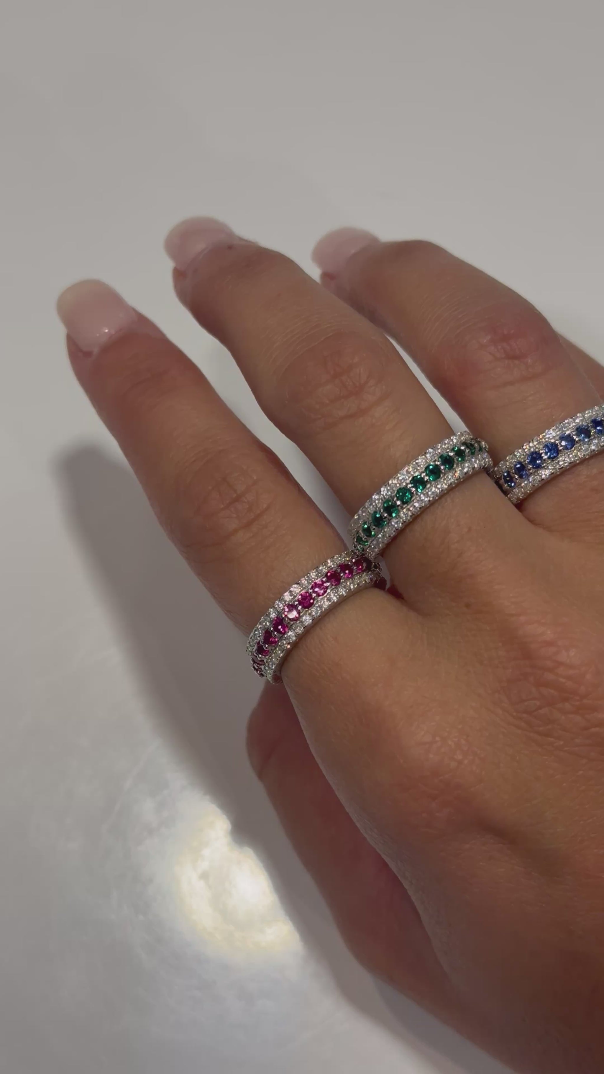 These eternity bands mix 1.2mm moissanites (aka sparkle bombs 💎) with 2mm lab emeralds, sapphires, or rubies for that pop of color you didn’t know you needed.