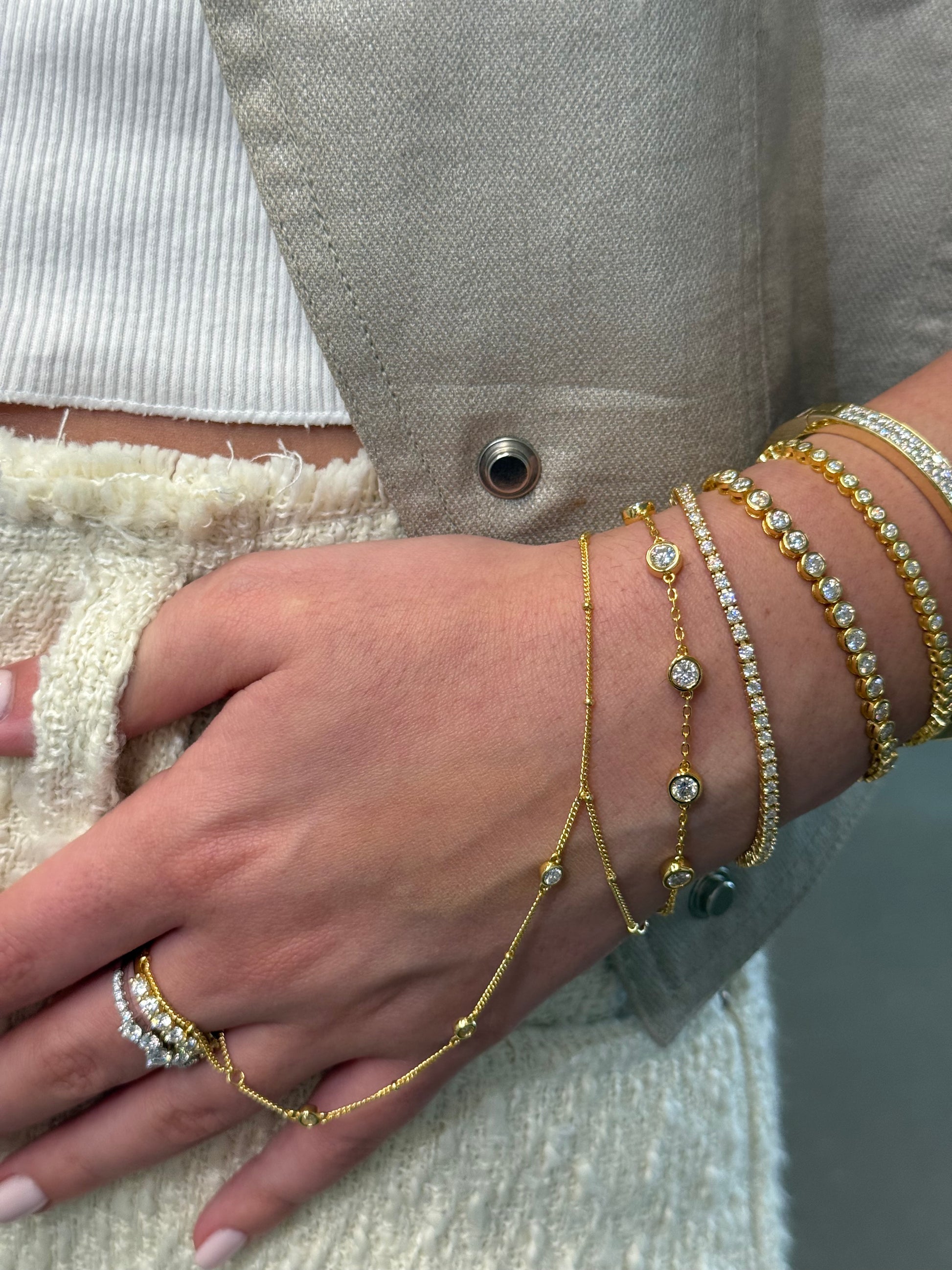 Indulge in the perfect combination of sparkle and style with this bracelet featuring radiant Moissanite stones. This bracelet radiates the brilliance akin to real diamonds, effortlessly reflecting their sparkle.