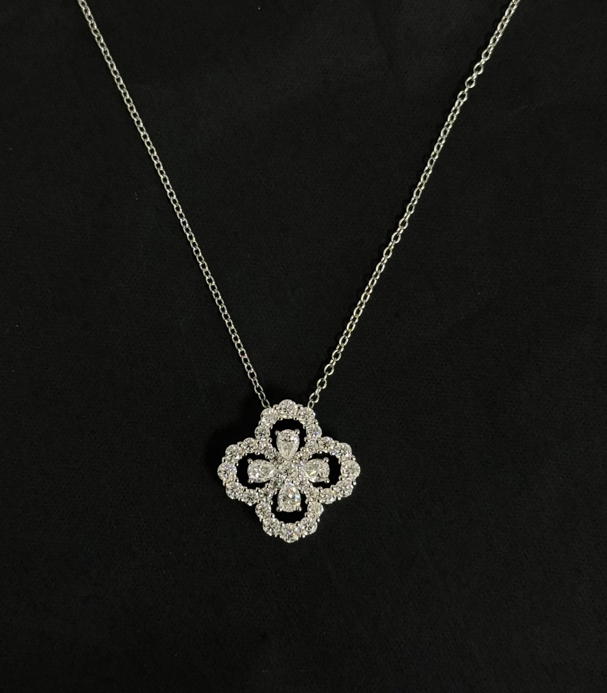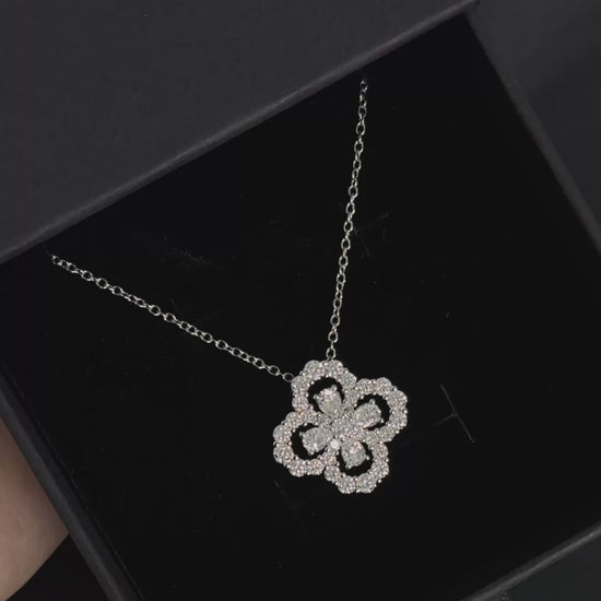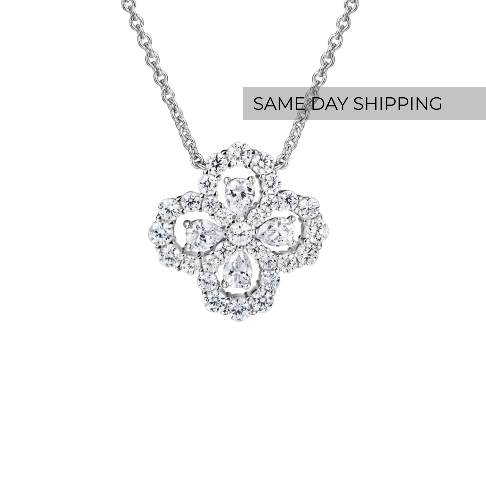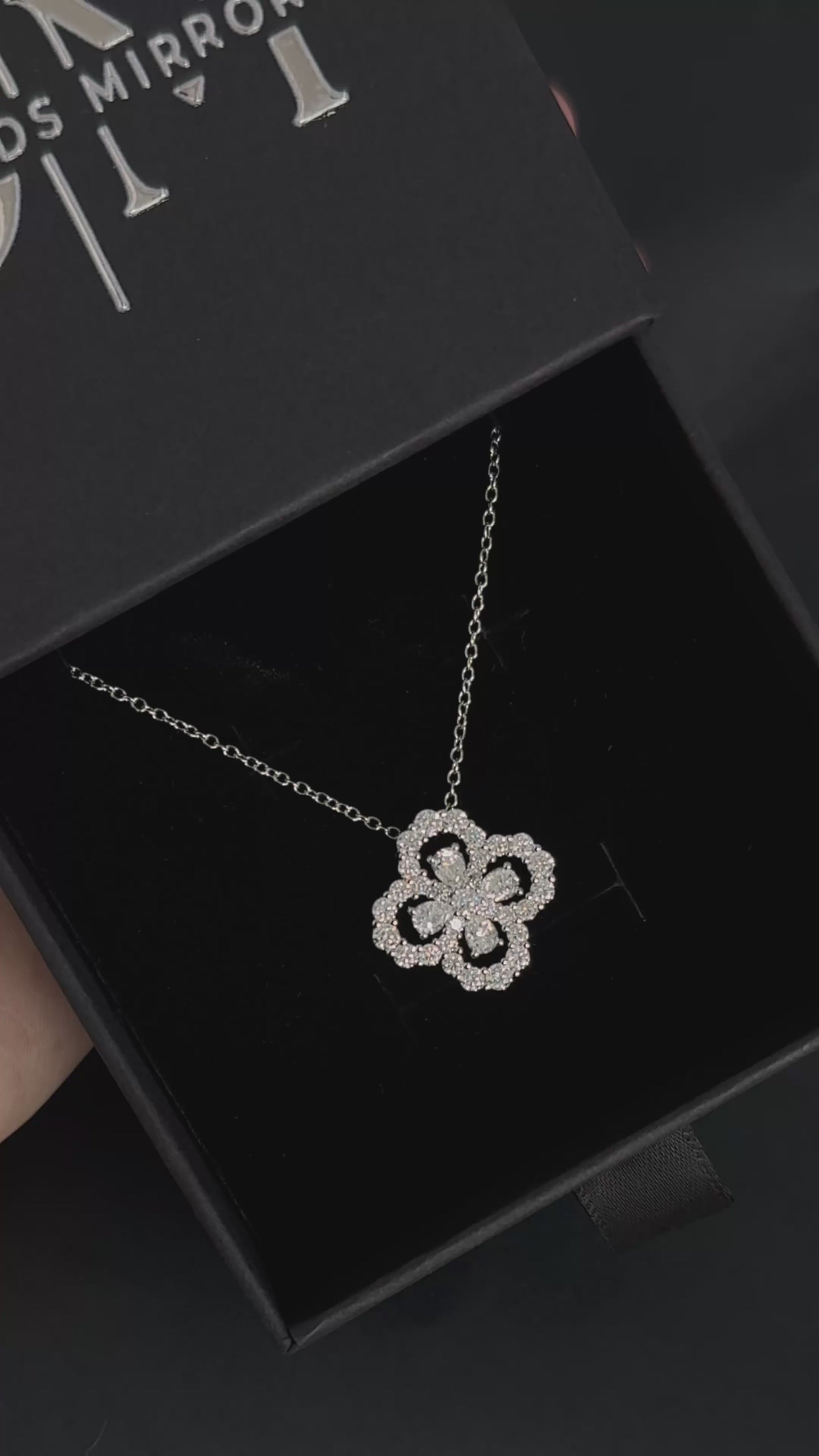 Effortlessly elevate your style with our chic clover necklace, crafted in 18k white gold vermeil over solid 925 sterling silver. Designed to mimic the brilliance of real diamonds, this piece is perfect for layering or wearing on its own.