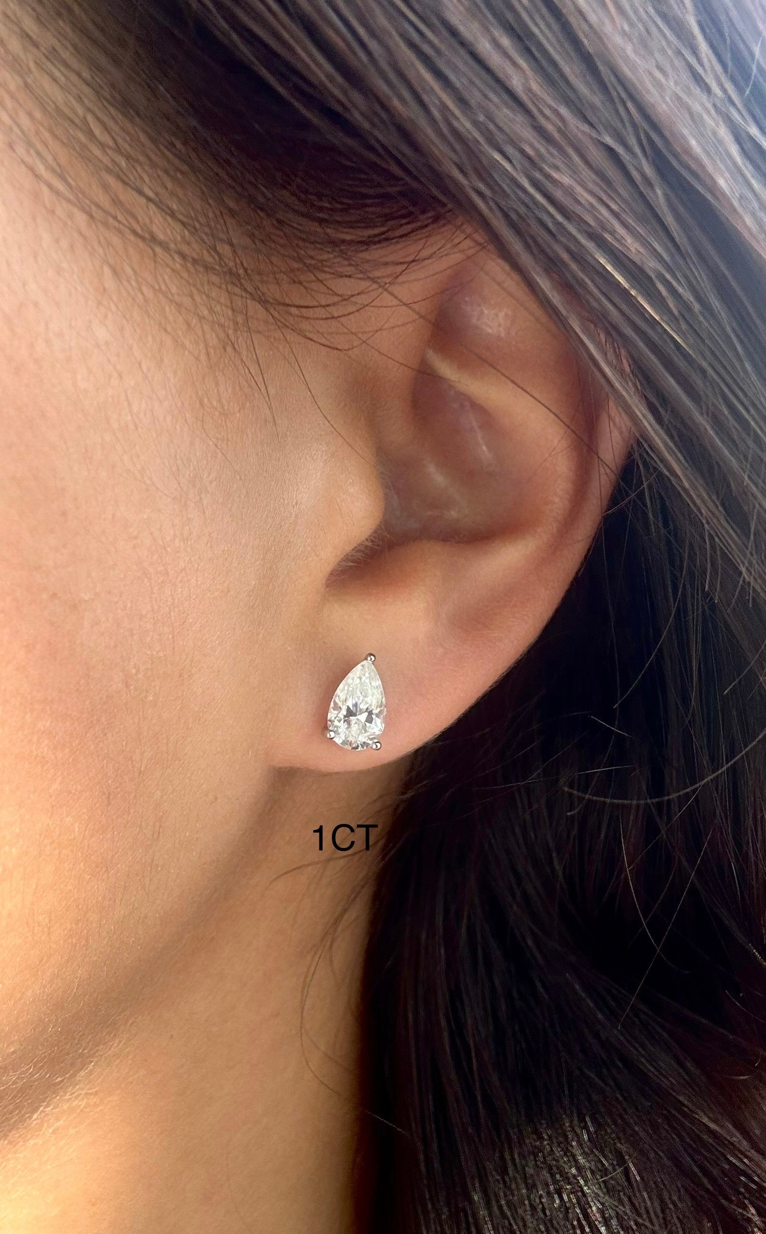 Shine brilliantly with our Moissanite Pear Cut Stud Earrings! These are the ideal alternative that mirrors the real deal. Indistinguishable without a microscope, the stones test positive on diamond testers.
