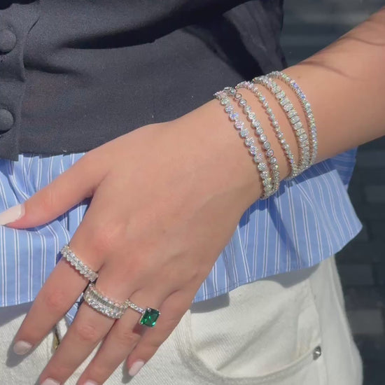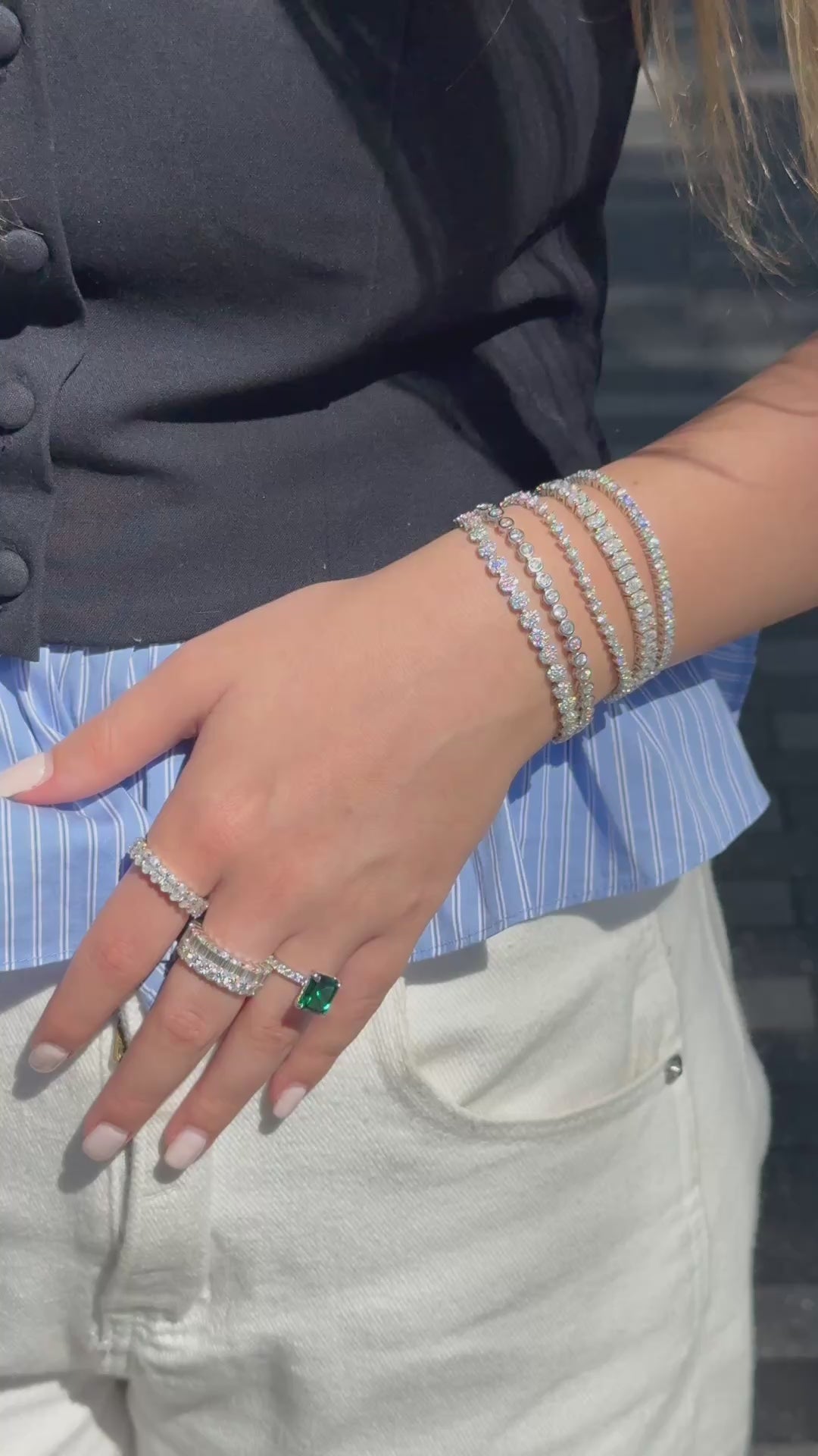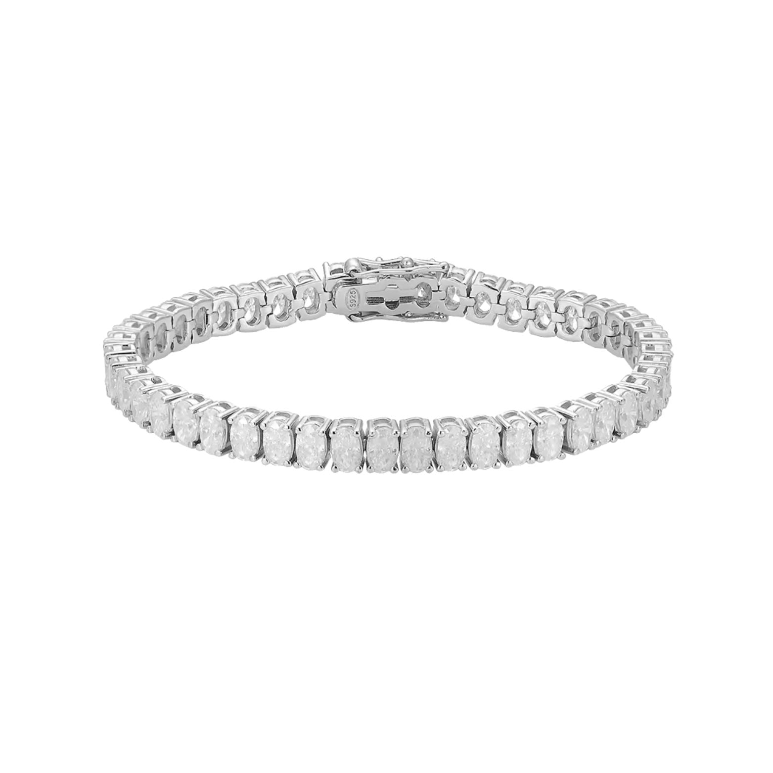 Pure sparkle in every move. This stunning tennis bracelet features oval-cut moissanite stones that catch the light beautifully from every angle. Elegant, timeless, and crafted to shine just like real diamonds — the perfect piece to elevate any outfit.
