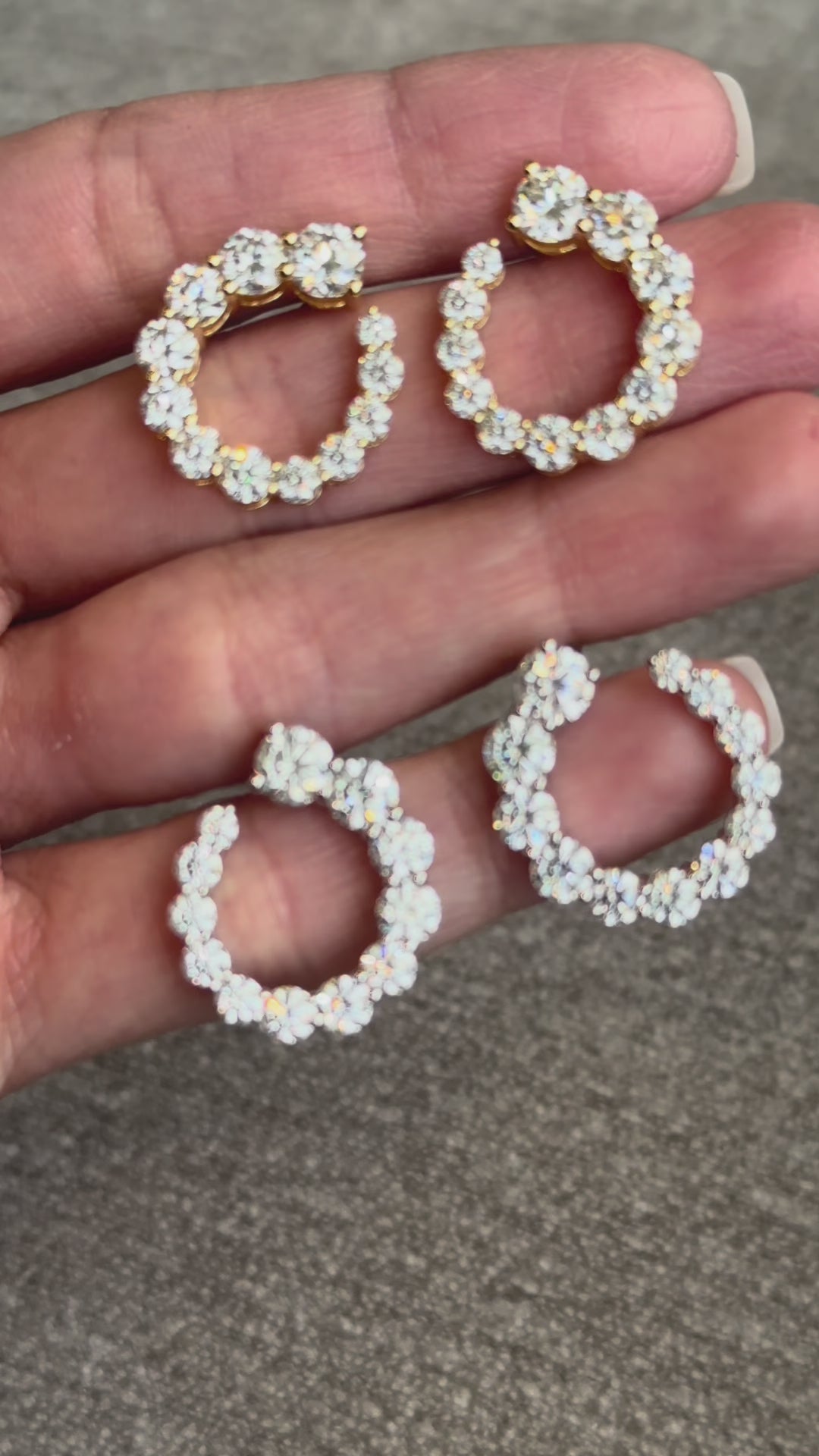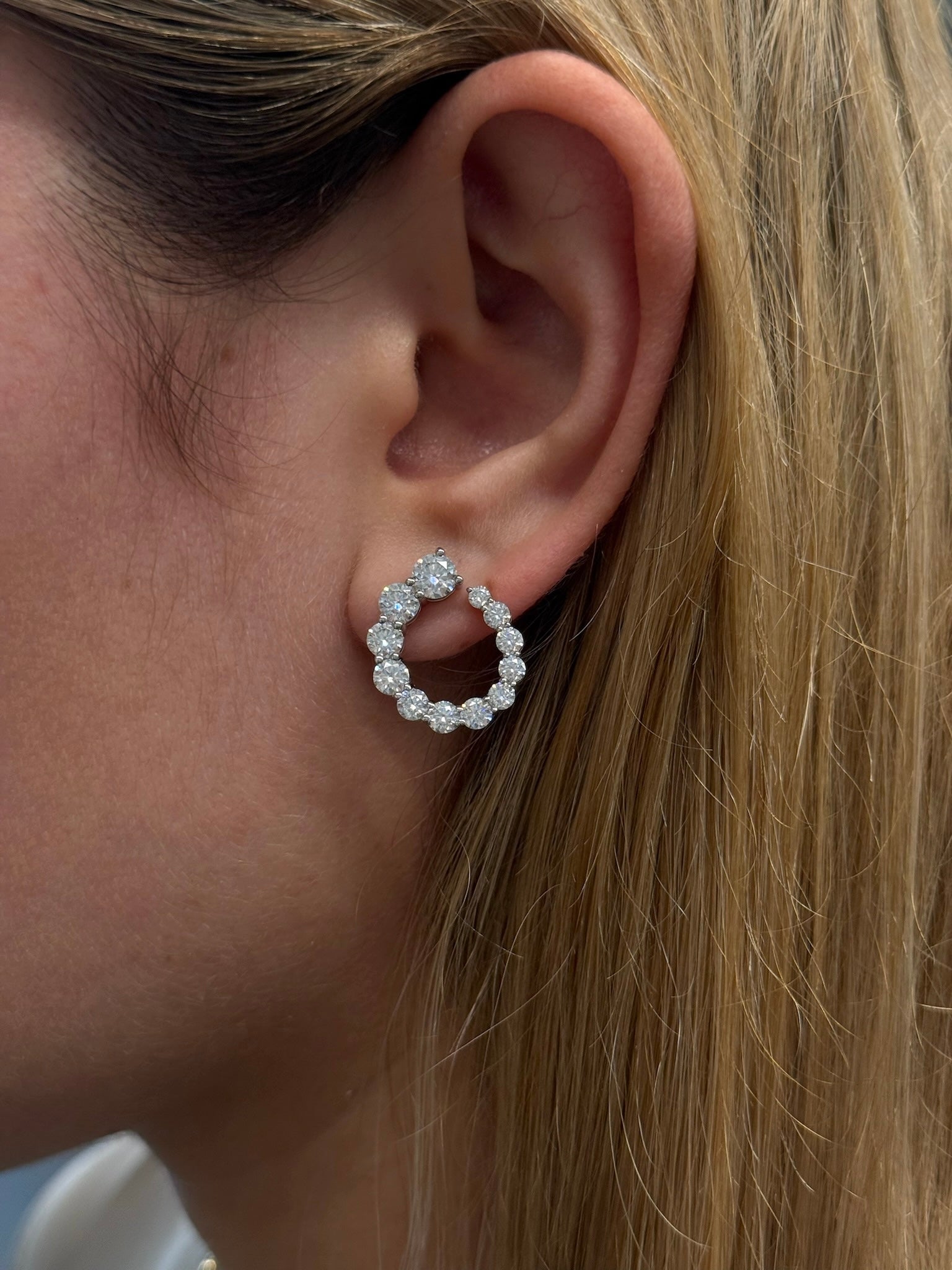 A sleek take on classic sparkle. These circle earrings feature 3.4 carats of brilliant round-cut moissanites set all around for nonstop shine. Bold, timeless, and versatile—made to stand out.