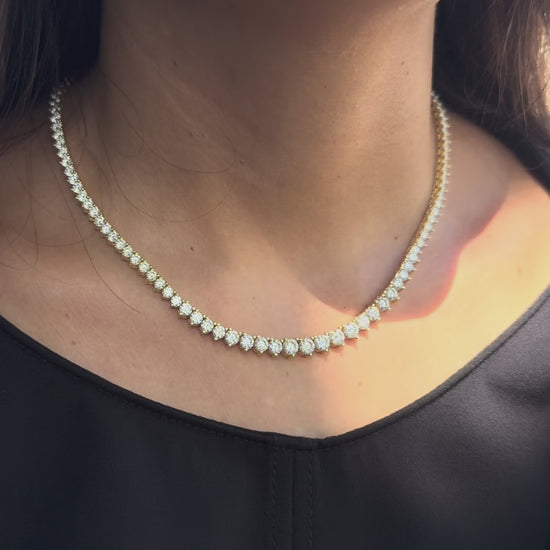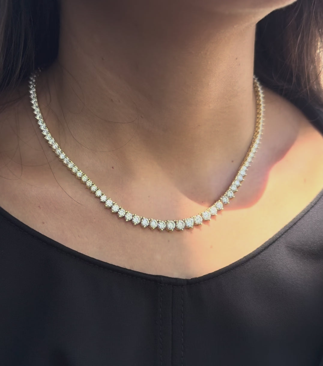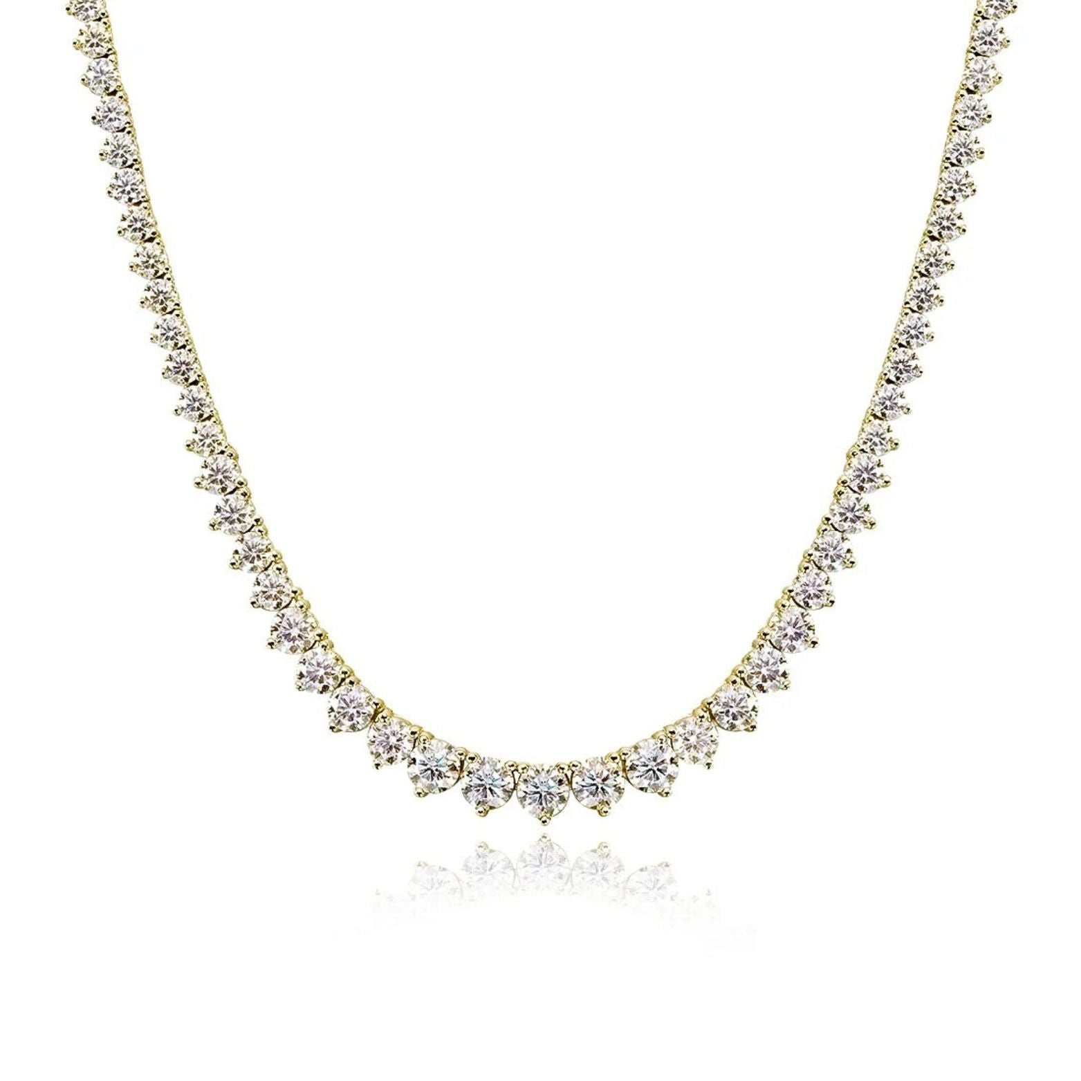Experience elegance with our Moissanite Graduated Tennis Necklace.This necklace exudes the brilliance of real diamonds, effortlessly mirroring their sparkle and passing the diamond tester, ensuring a standout look with its radiant hand-set stones.