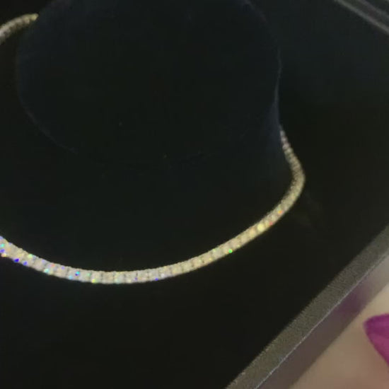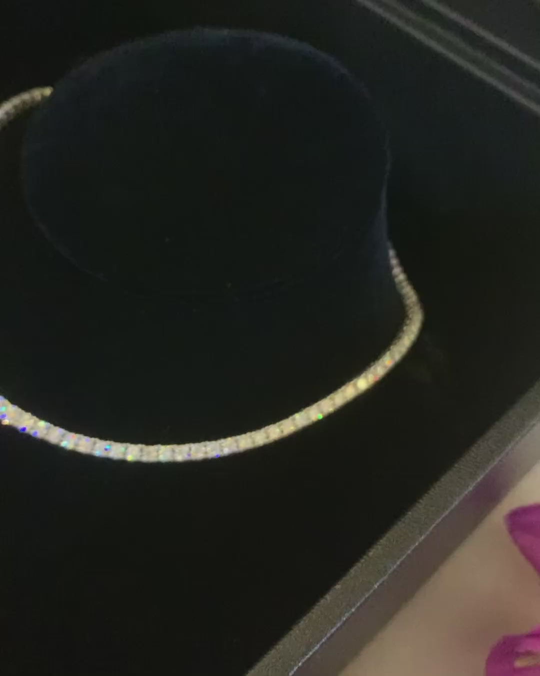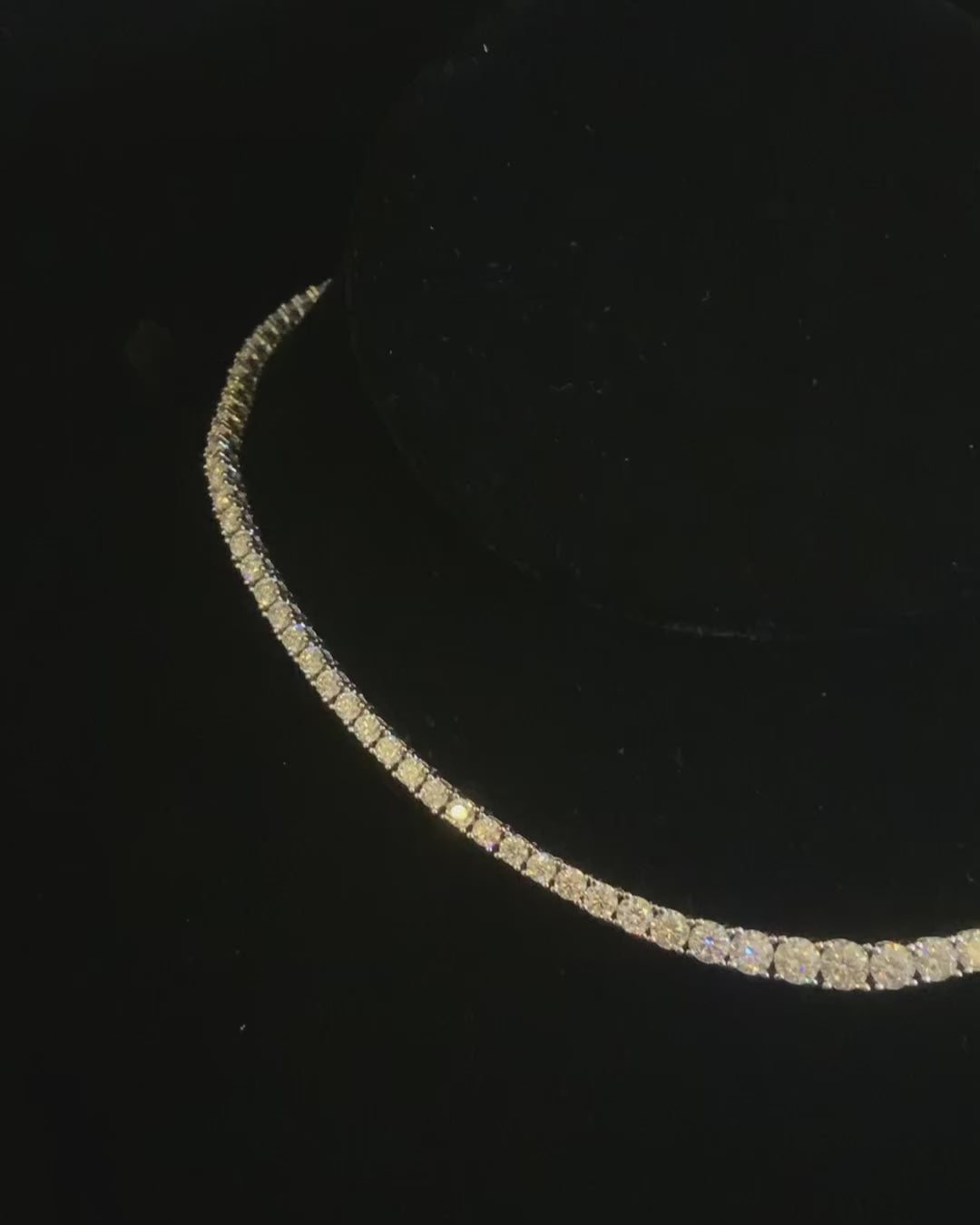 Experience elegance with our Moissanite Graduated Tennis Necklace.This necklace exudes the brilliance of real diamonds, effortlessly mirroring their sparkle and passing the diamond tester, ensuring a standout look with its radiant hand-set stones.