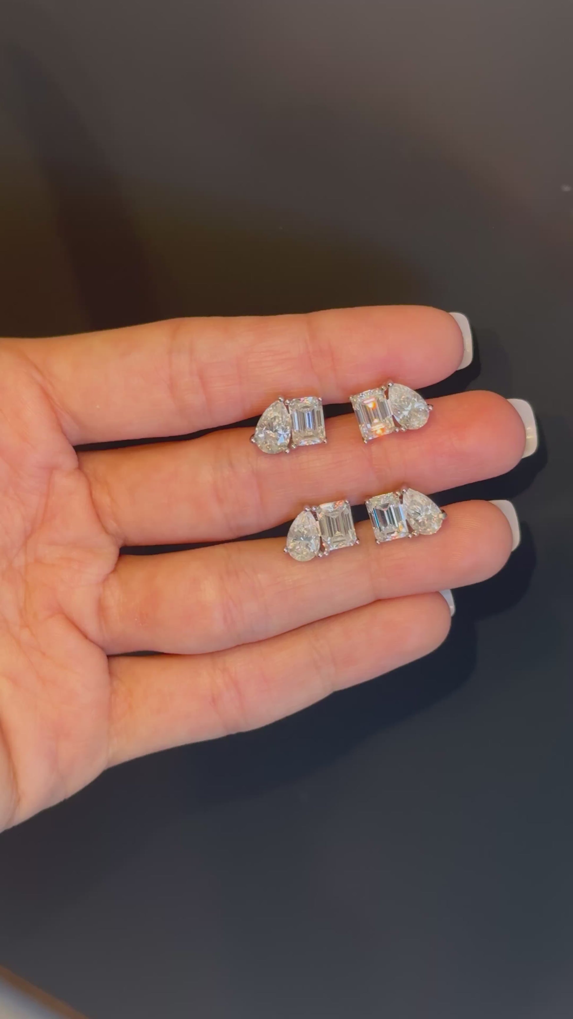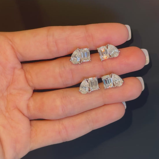 Toi et Moi Emerald & Pear Cut Stud Earrings
